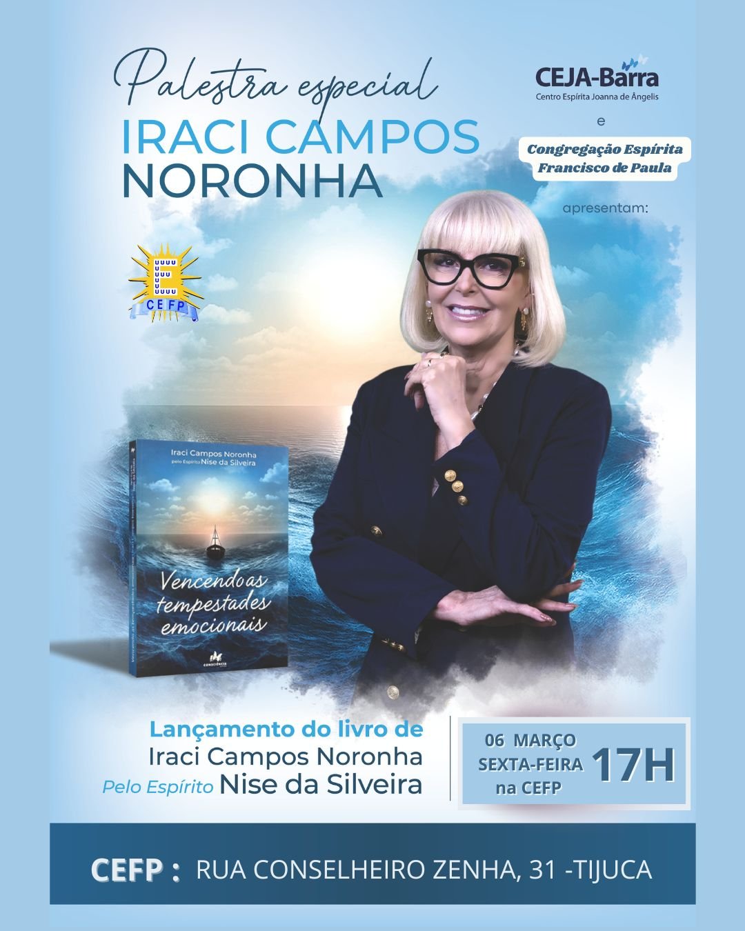 A Congregação Espírita Francisco de Paula convida você, seus parentes e amigos para uma tarde especial com Iraci Campos Noronha no lançamento do livro